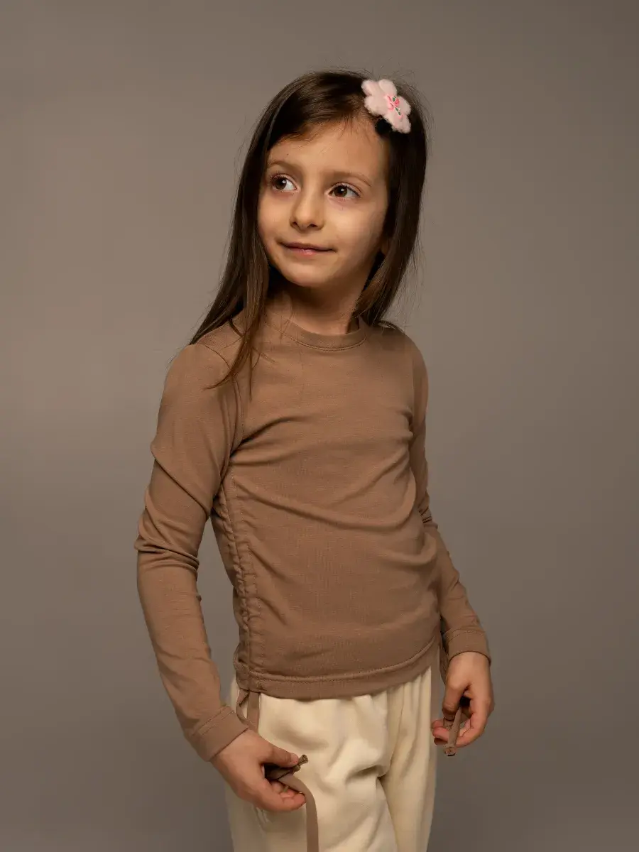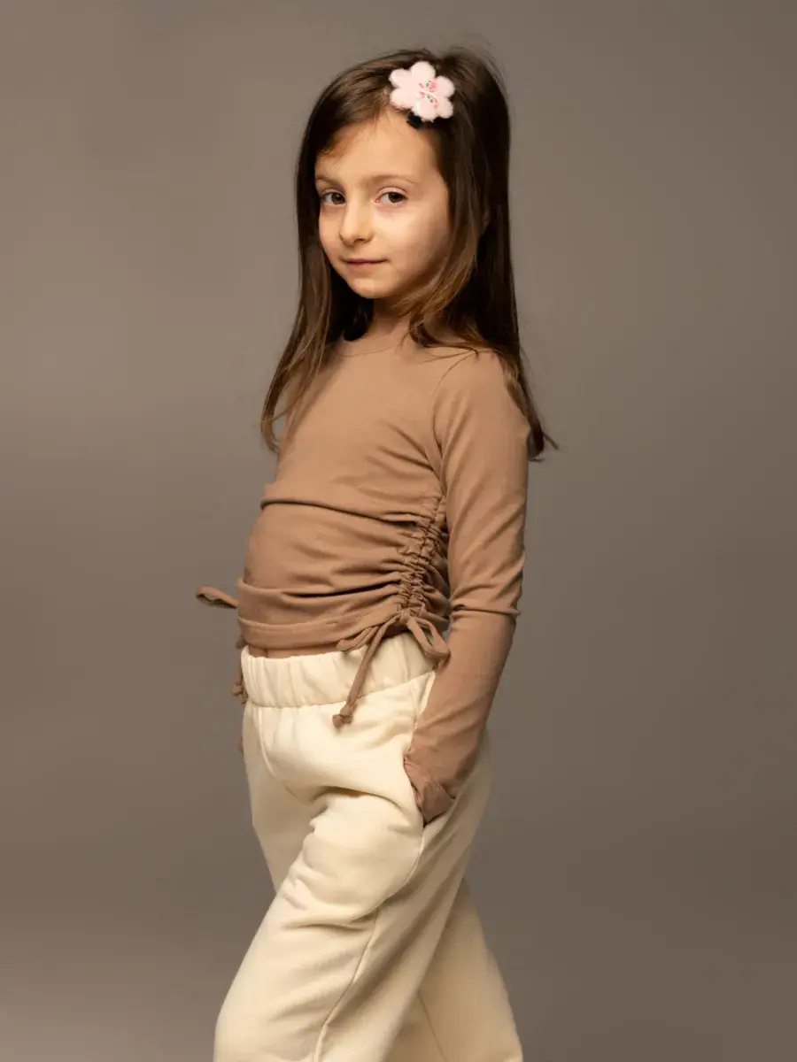 Лонгслив от KADA_KIDS - это идеальный выбор для юных модниц, которые ценят комфорт и стиль. Изготовленный из мягкого и приятного к телу хлопка, он обеспечит максимальное удобство в течение всего дня. Оригинальные складки и шнуровка на груди добавляют модели изюминку, а завязки на талии позволяют регулировать посадку. Этот лонгслив станет отличным вариантом для школы, прогулок с друзьями или просто для домашнего уюта.